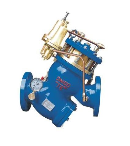 當管網壓力超過安全值時,高壓導閥立即開啟與大氣相通,主閥開時開啟泄水降壓,當壓力恢復到正常狀態后,導閥和主閥逐步關閉。