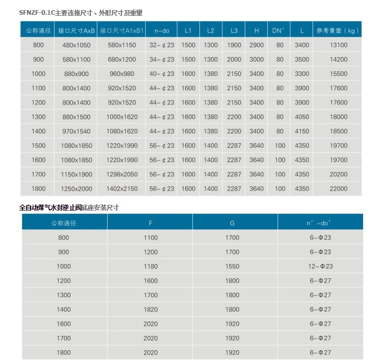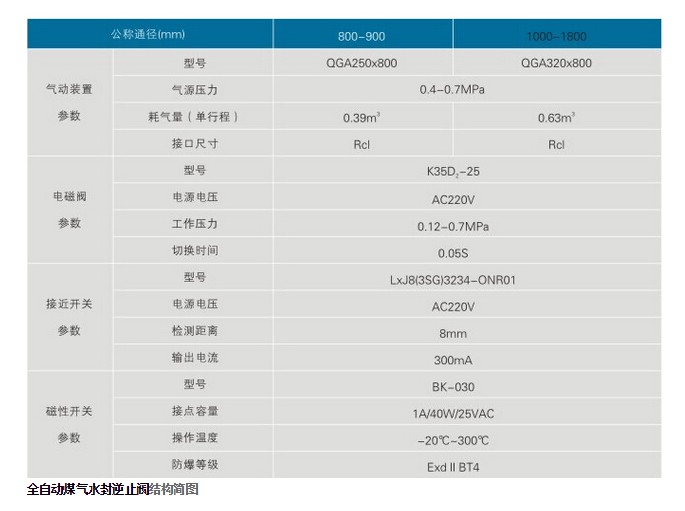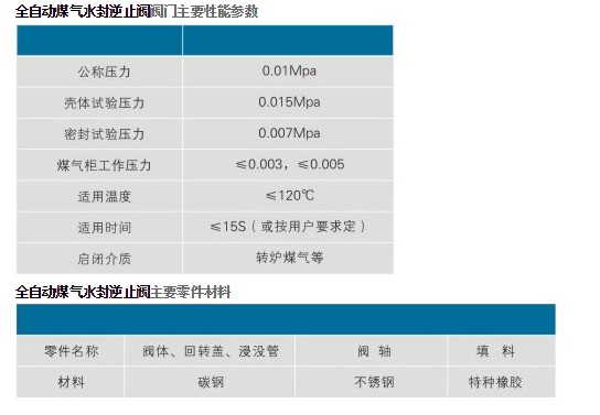 SFNZF氣動煤氣水封逆止閥主要性能參數