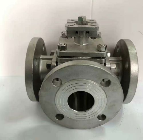 T型三通球閥,是四閥座密封,四種流通組合方式,不僅可實現介質流向的切換,也可使三個通道相互連通(二進一出,合流或一進二出,分流),同時也可關閉任一通道,使另外兩個通道連通,靈活控制管路中介質的合流或分流。