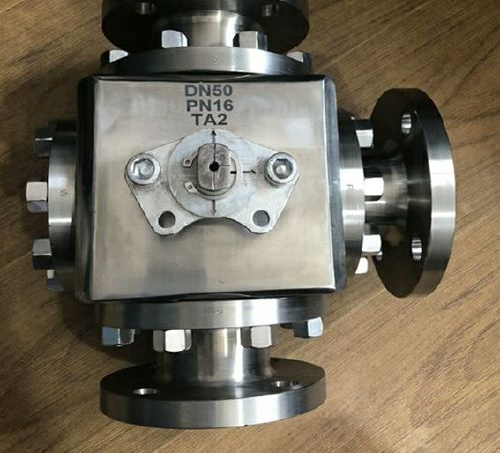 Q44F16-鈦材質三通球閥靈活控制管路中介質的合流或分流,廣泛的運用在石油、化工、食品、醫藥、輕紡、造紙、水電、船舶、冶 金、煤氣、供排水等系統中。配裝電動或者氣動可實現現場及遠距離 操作,也可實現單獨或集中控制。